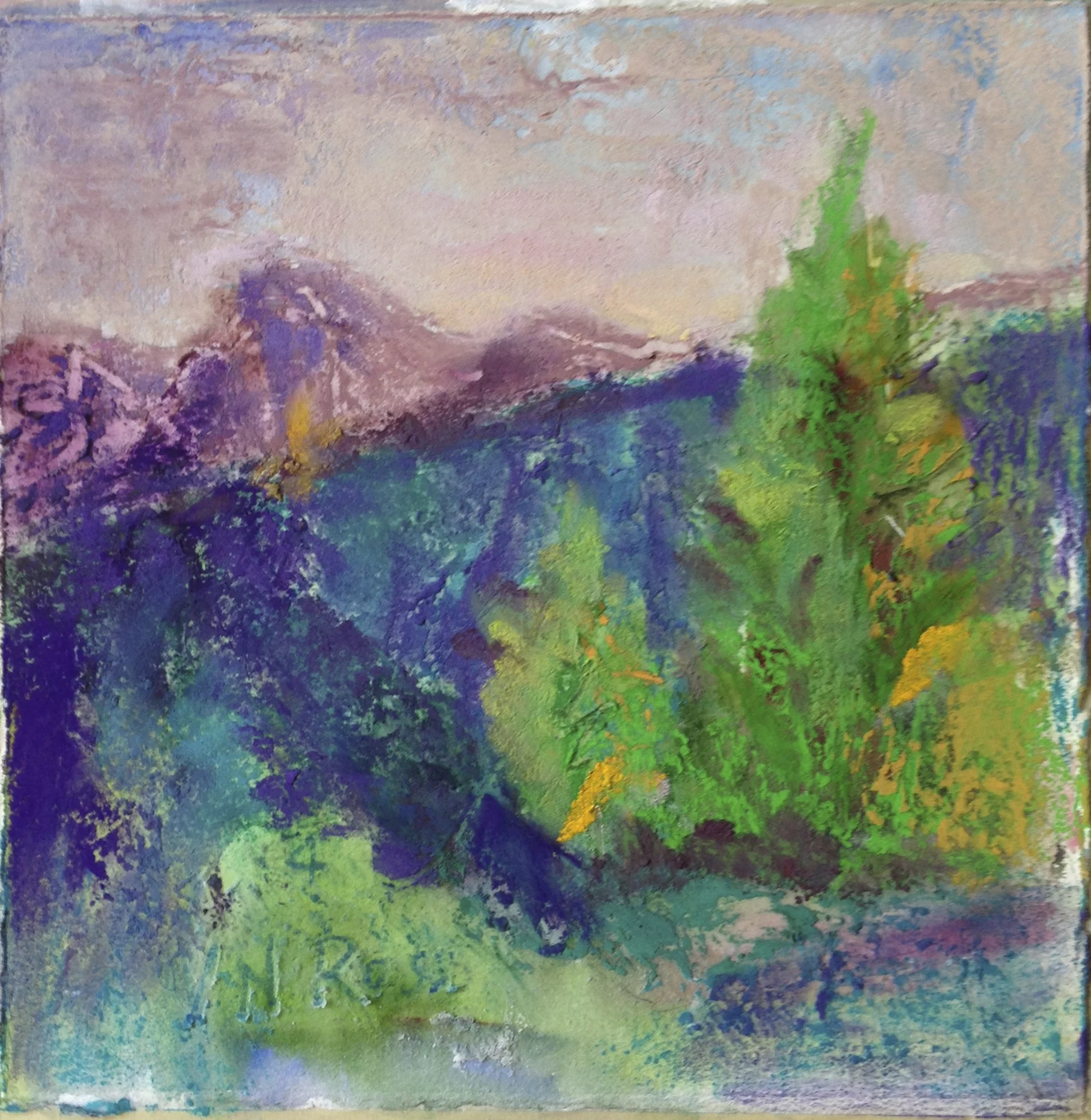 7.5" x 7.5" Mixed Media (watercolor, pastel, Gamblin Cold Wax)