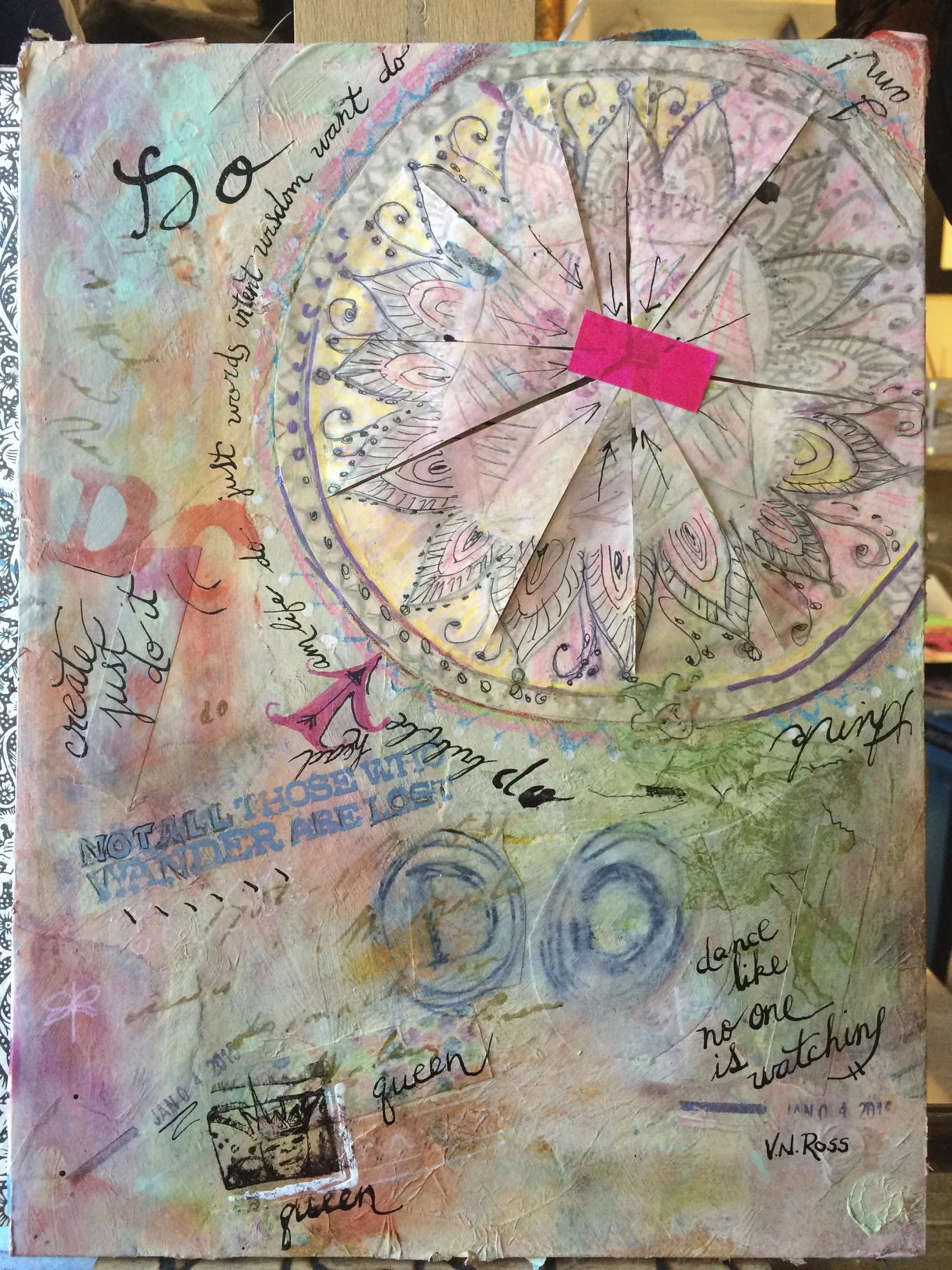 Life Book 2015 is the brainchild of Tamara Laporte from Willowing Arts in England. She has the most charming accent that shows her Dutch ancestry. She is also exudes an Earth Mother persona...it is all about self image. The first day of January, she jumped right in with a "warm-up" exercise. Took me TWO days to get mine done. Oh well, that, too is OK according to Tam. There are about 20 guest instructors throughout the year. I am EXCITED.